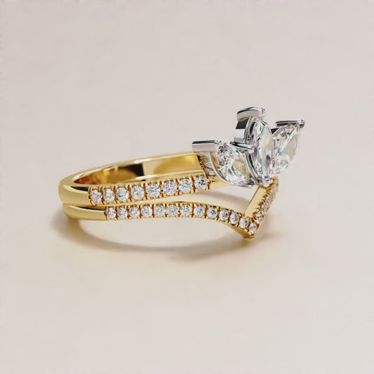 Open Pear Crown Diamond Ring for Women Luxury