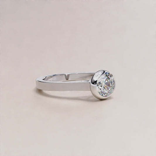 Round Bezel LAB Diamond Solitaire Engagement Ring White Gold