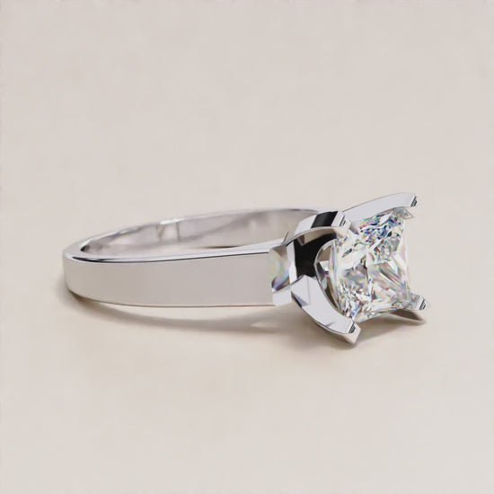 Princess cuts have four sharp corners that are vulnerable to chipping. The four-prong solitaire setting with prongs at each corner provides excellent protection, making them suitable for daily wear when properly set and cared for.
